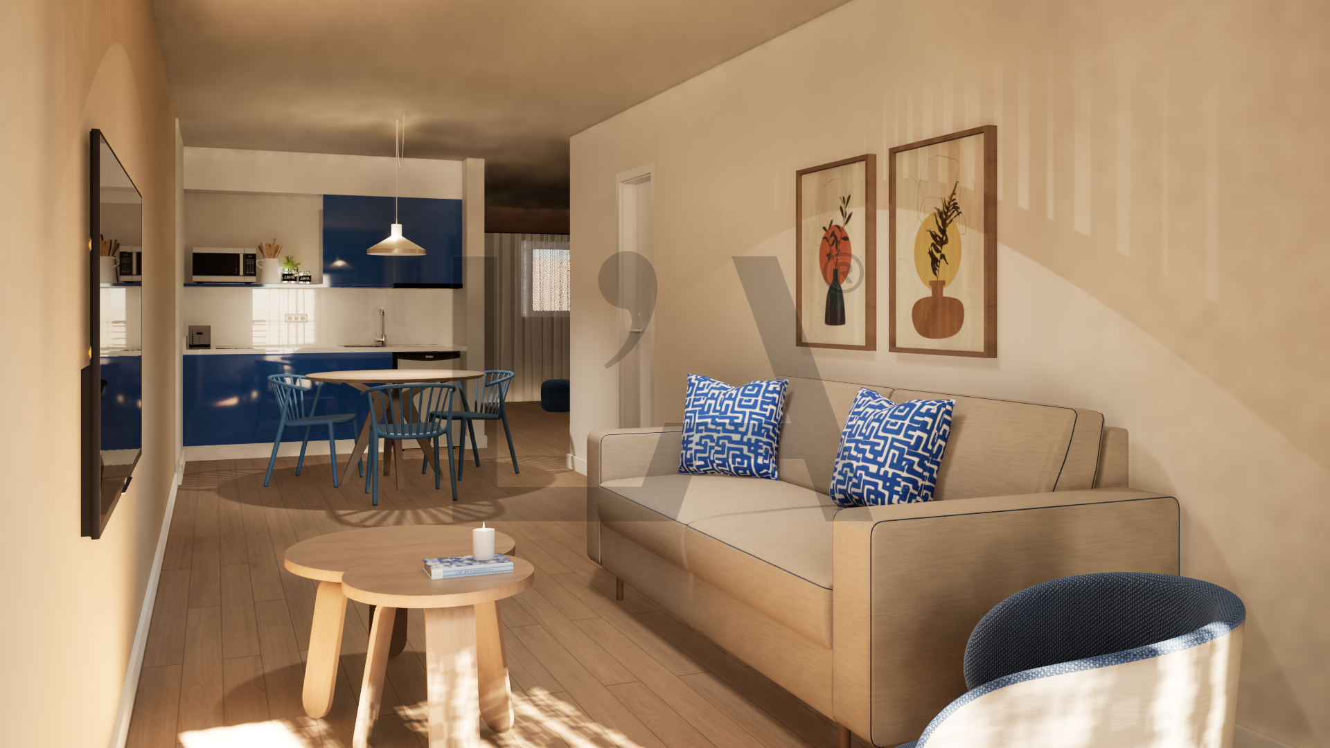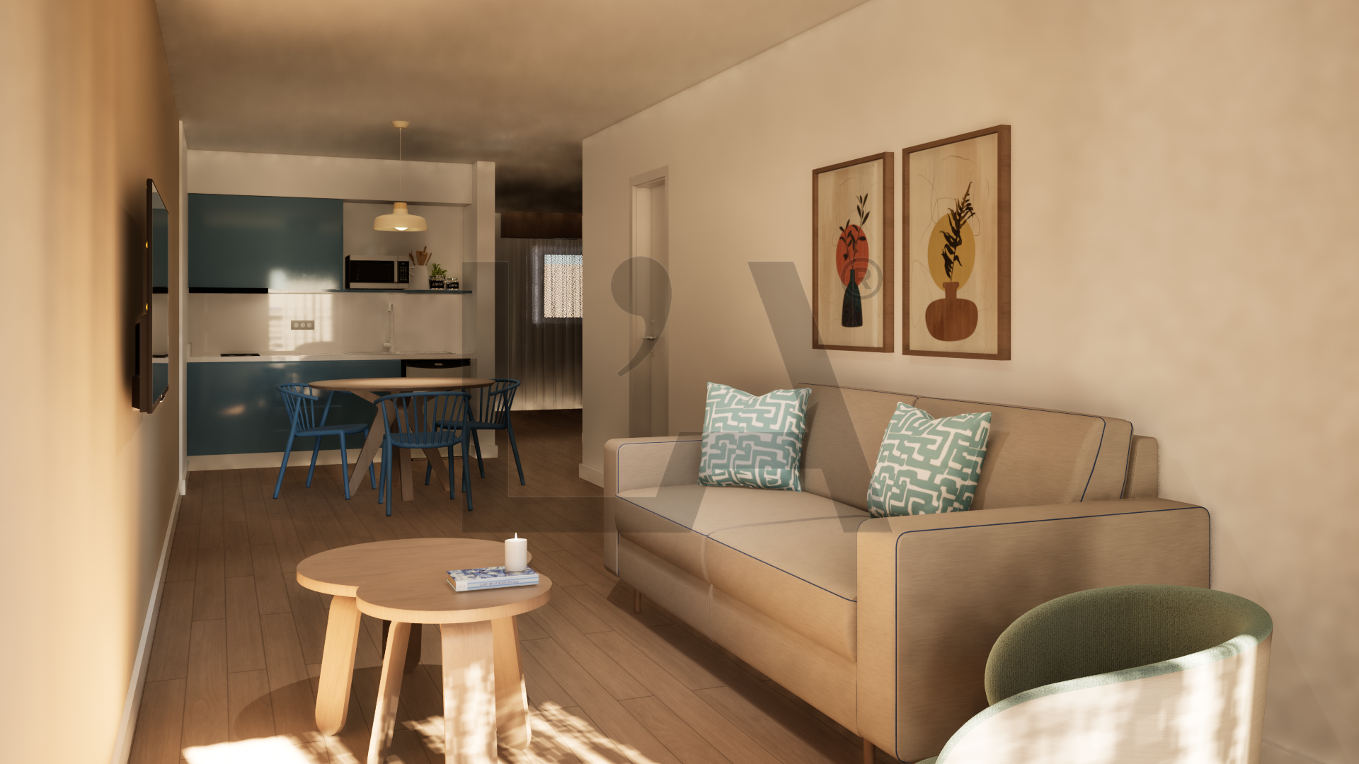 A partir de ahí, los renders se convierten en una primera aproximación al espacio. Una visualización que permite anticipar atmósferas, proporciones y materiales antes de su materialización.